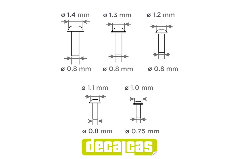 Set of 500 button head hex socket screws with diameters of 1.0mm, 1.1mm, 1.2mm, 1.3mm and 1.4mm (100 units of each of the different sizes), with which to detail any part or piece of your models where these types of screws are found.