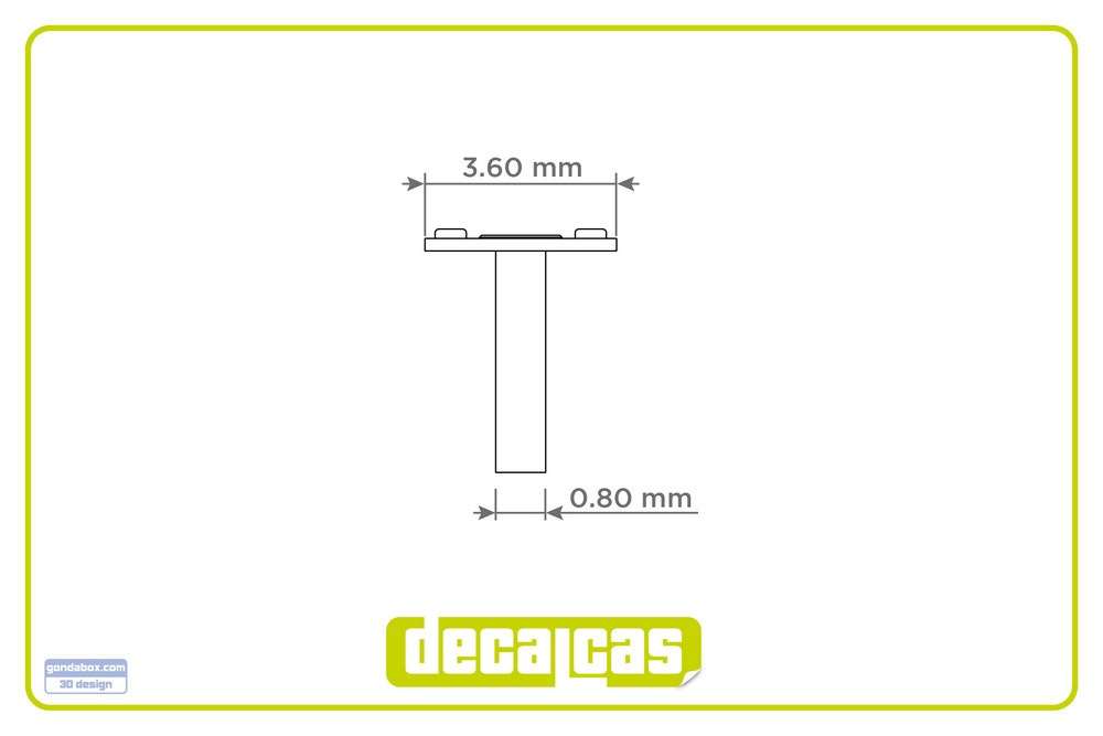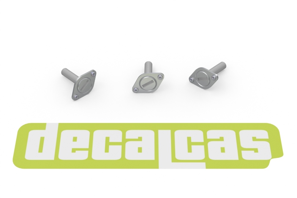 Dzus type quick release fasteners with large rhomboid base (Type 2) at 1/12 scale, with a width of 3,6mm. Made in resin by 3D printing, they reproduce all the details, such as the mounting rivets. They are extremely thin, and have a 0.8mm diameter support rod for mounting, which will allow you to fix them with precision. Made with the usual quality of DECALCAS products, you only have to worry about painting and gluing on your scale model.