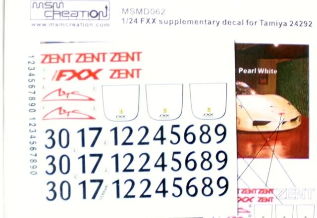 Ferrari FXX Supplementary decal (M.Schumacher / ZENT FXX) 1/24 - MSM Creation