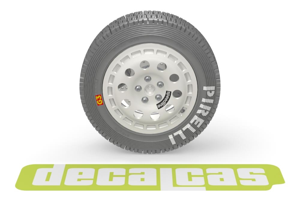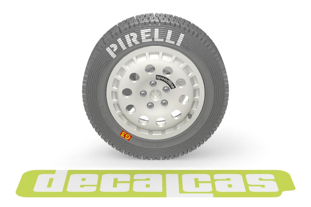 different Speedline logos and the tire's own markings for