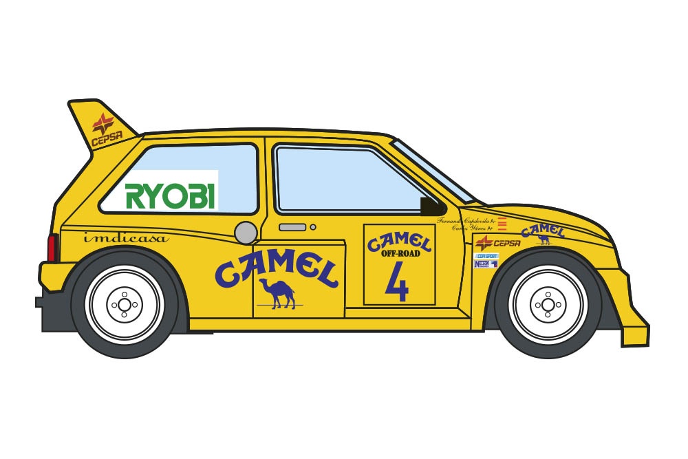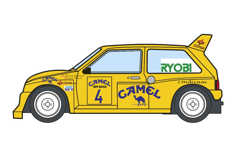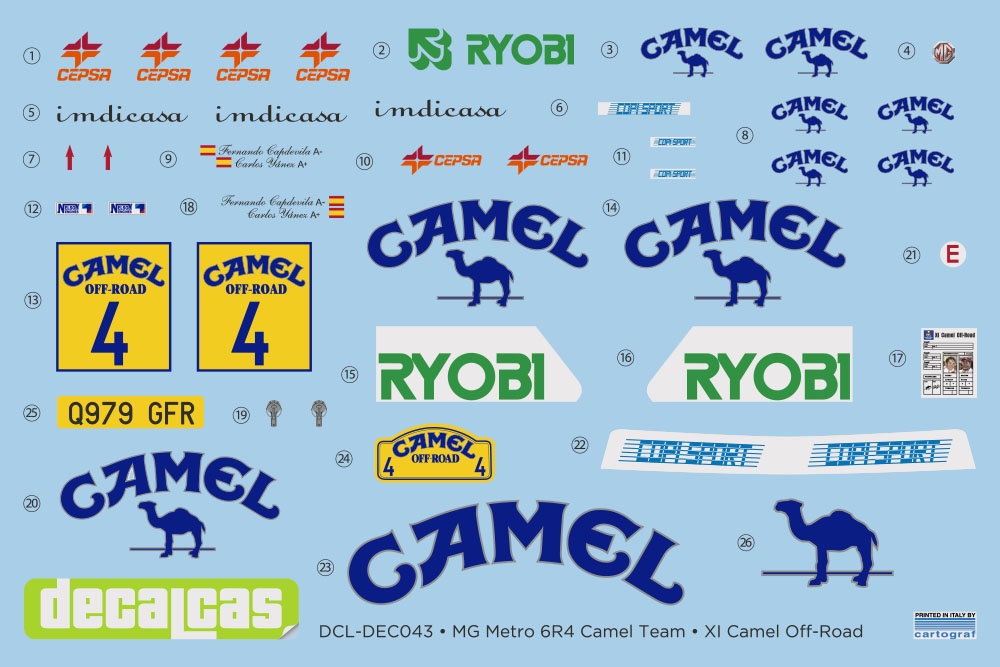 Decals for recreating the MG Metro 6r4 with which Fernando Capdevilla and Carlos Yañez won at the Canary Islands the XI Camel Off-Road. These decals are designed for use with the Belkits model kits. The decal has been printed at Cartograf.