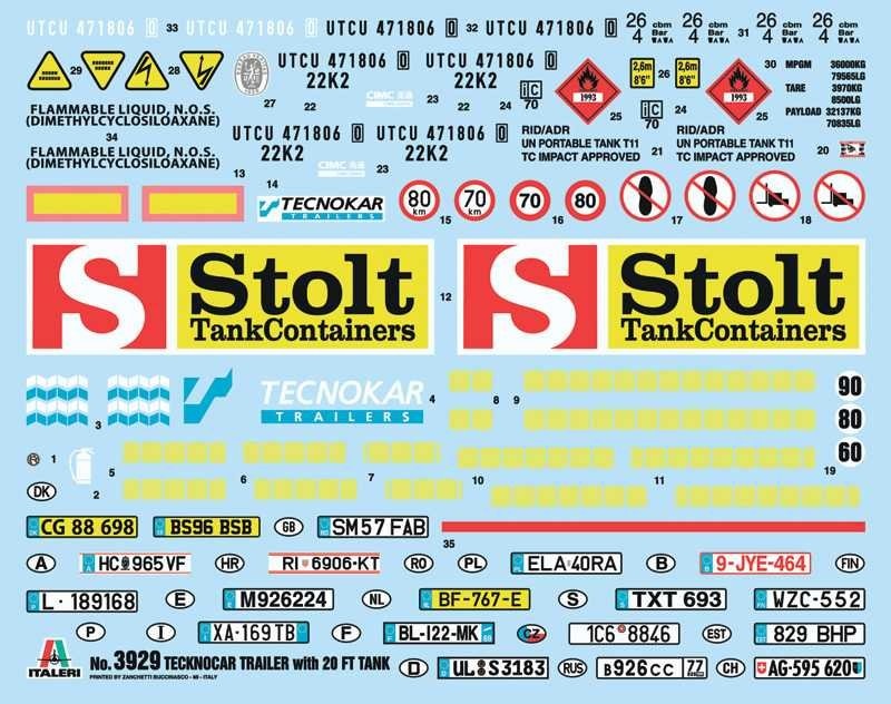 TECNOKAR TRAILER WITH 20' TANK (1:24) Model Kit 3929 - Italeri