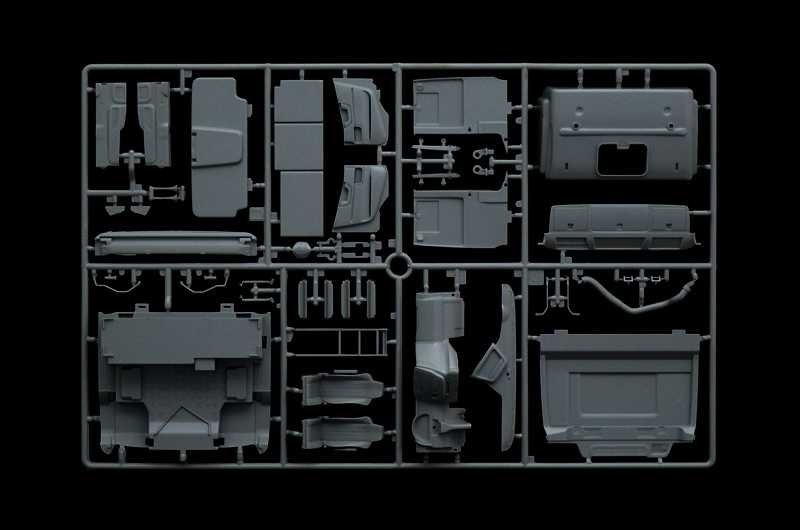 Model trucku ke slepení. Velikost: 1:24; 25,4 cm. Balení obsahuje