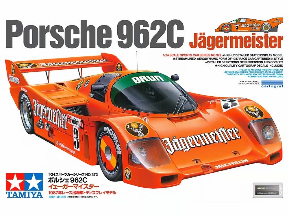 Plastikový model vozu Porsche 962C, se kterým Brun Motorsport závodil v roce 1987, v měřítku 1:24.