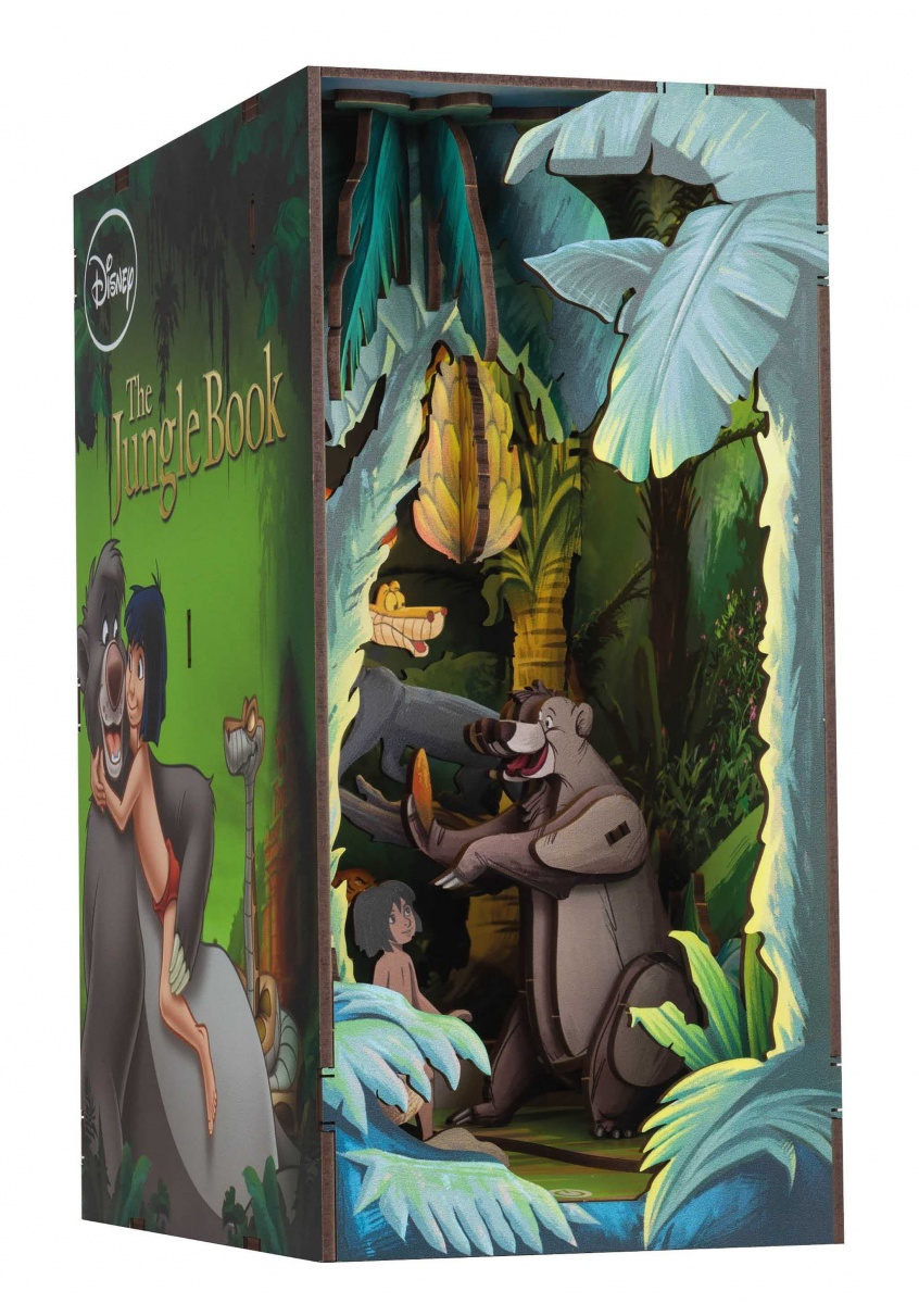 Knižní koutek ukazuje detailní scénu z Disneyho Knihy džunglí.