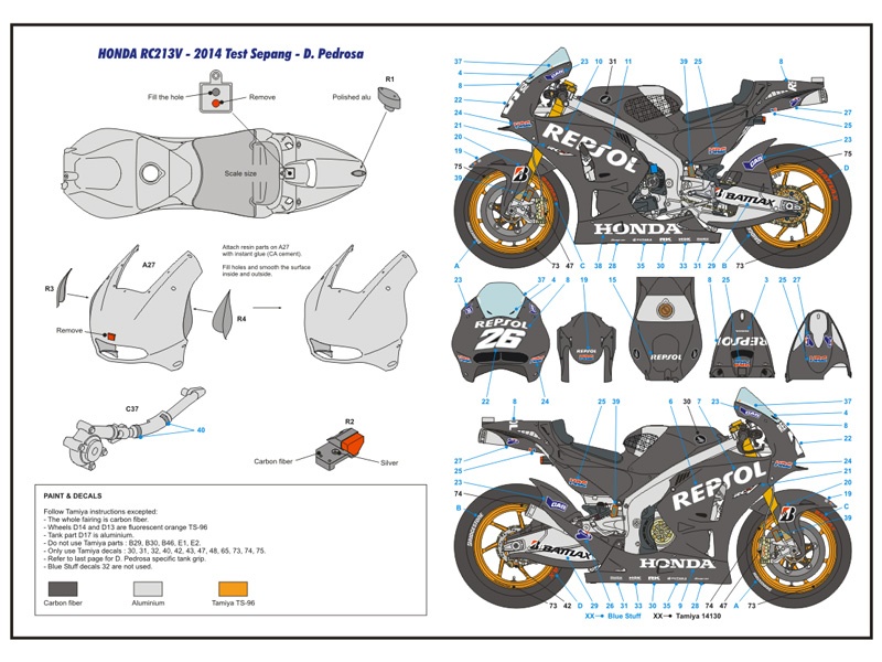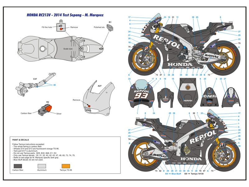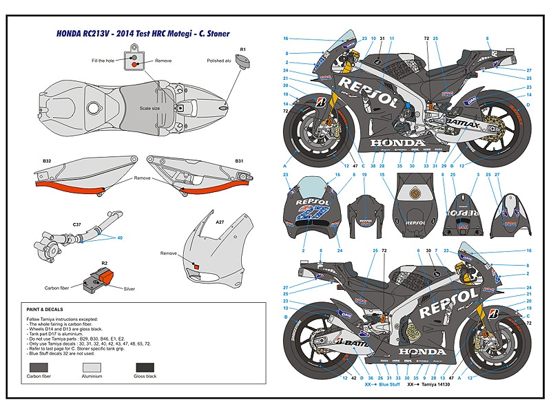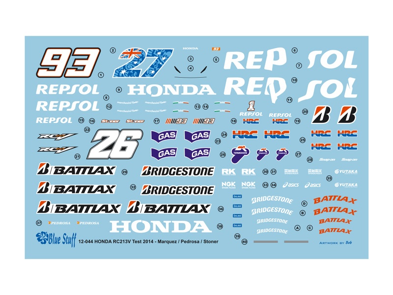 HONDA RC213V Test 2014 - Marquez / Pedrosa / Stoner Decals 1/12 - Blue Stuff