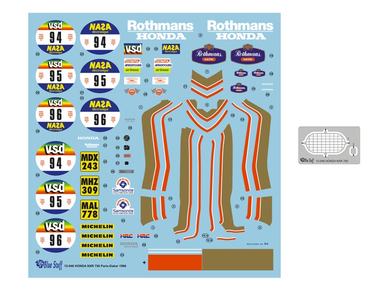 HONDA NXR 750 Paris-Dakar 1986 Decals 1/12 - Blue Stuff