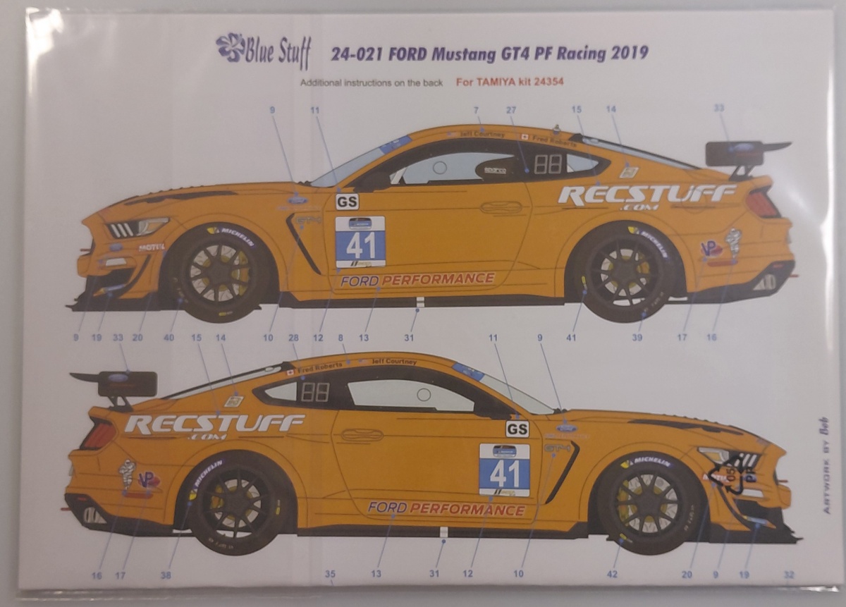 SLEVA - DISCONT - FORD Mustang GT4 PF Racing 2019 Decals 1/24 - Blue Stuff