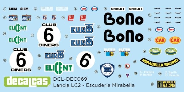 Lancia LC2 Team Euro TV Mirabella Racing sponsored by Elicent Euro Bono - 1983 1/24 - Decalcas