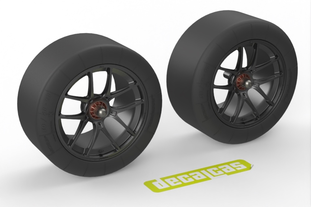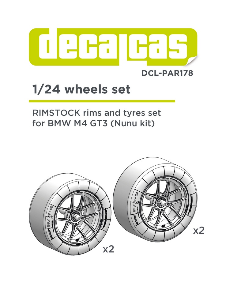 1/24 scale rims and tires set for the Nunu BMW M4 GT3 kit. At Decalcas, they