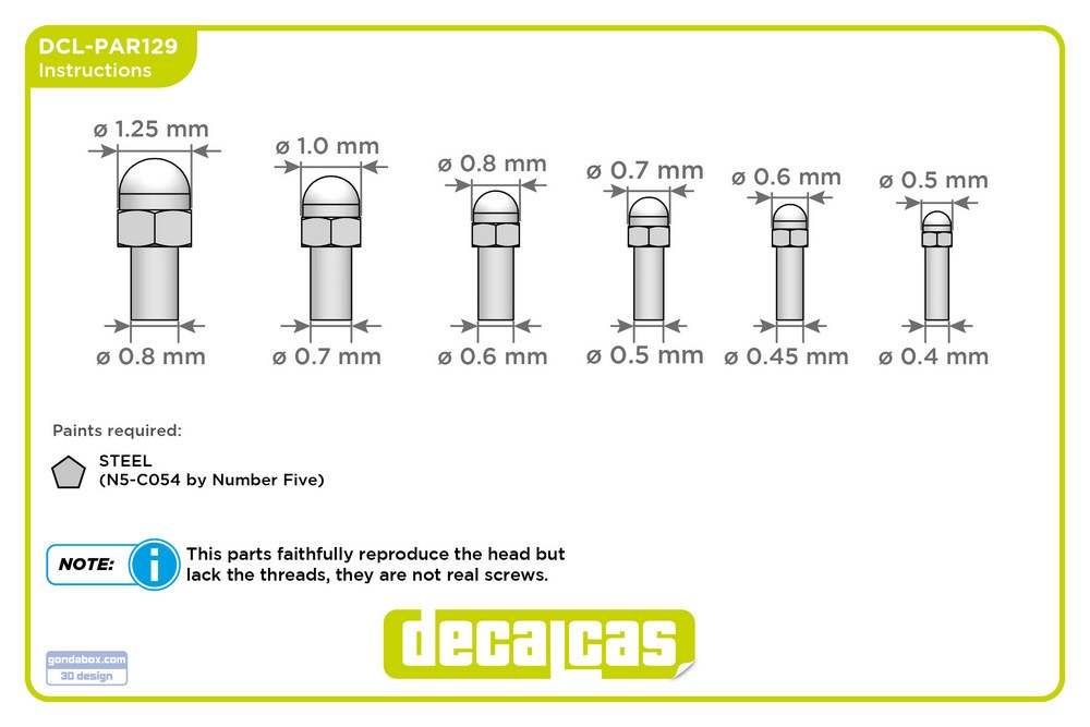 Set of 600 hexagonal domed cap screws with diameters of 0,5mm, 0,6mm, 0,7mm,