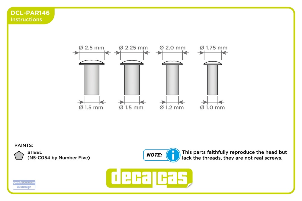 those used to fasten fairings, with diameters of 1.75mm, 2mm,