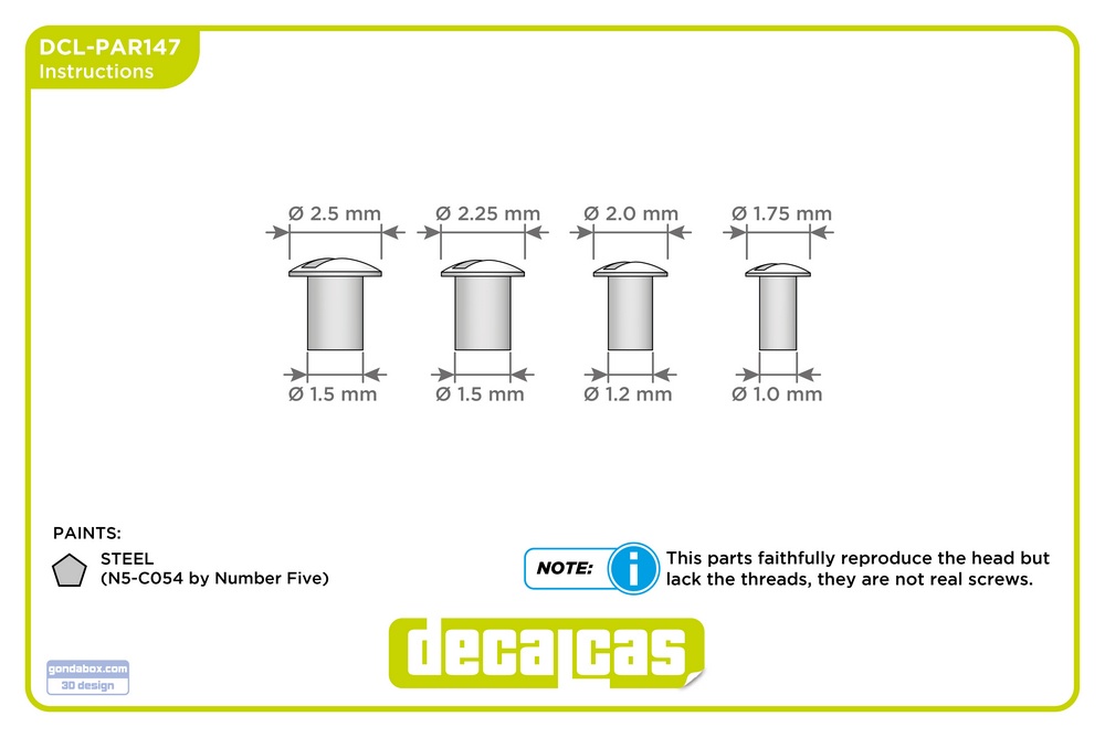 Slotted large raised cheese head screws 1.75 - 2.5 mm - Decalcas