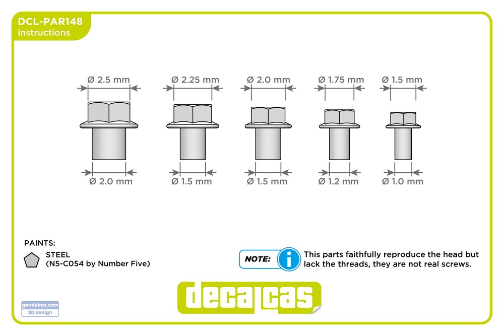 Hexagon flange bolts 1.5 - 2.5 mm - Decalcas