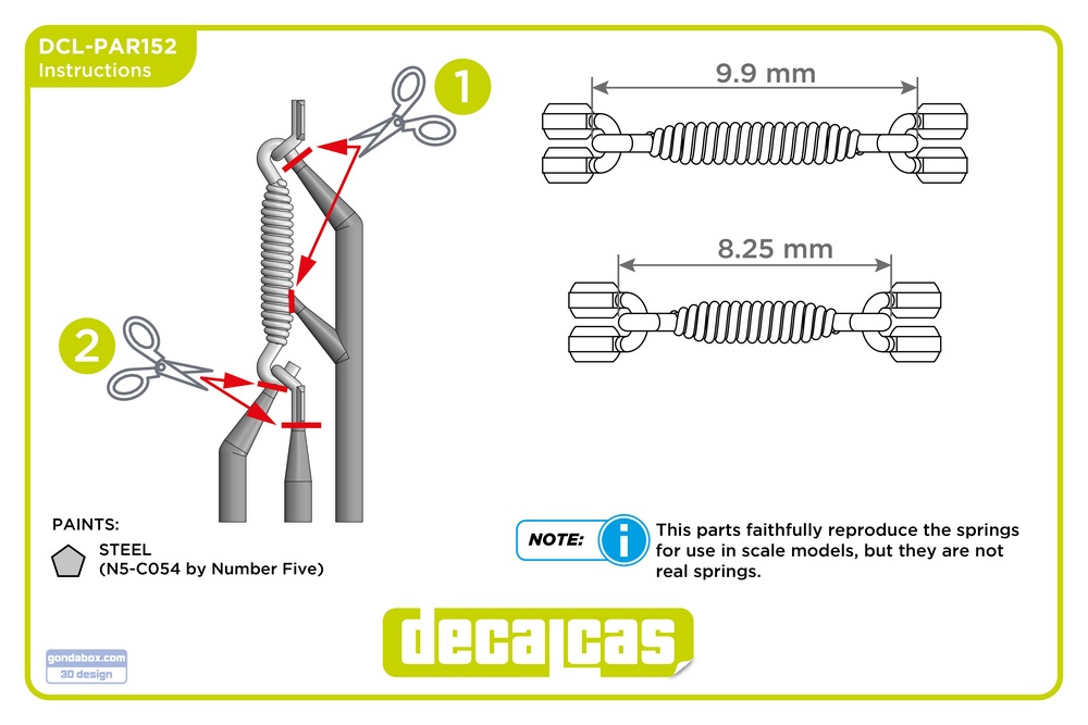 Short and long springs reproduced at 1/9 scale, similar to those used in