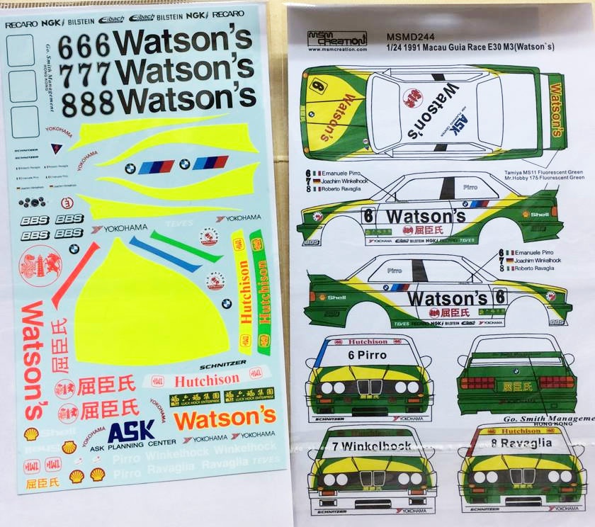 BMW M3 1991 Macau Guia Race "Watson's" for Beemax 1/24 - MSM Creation
