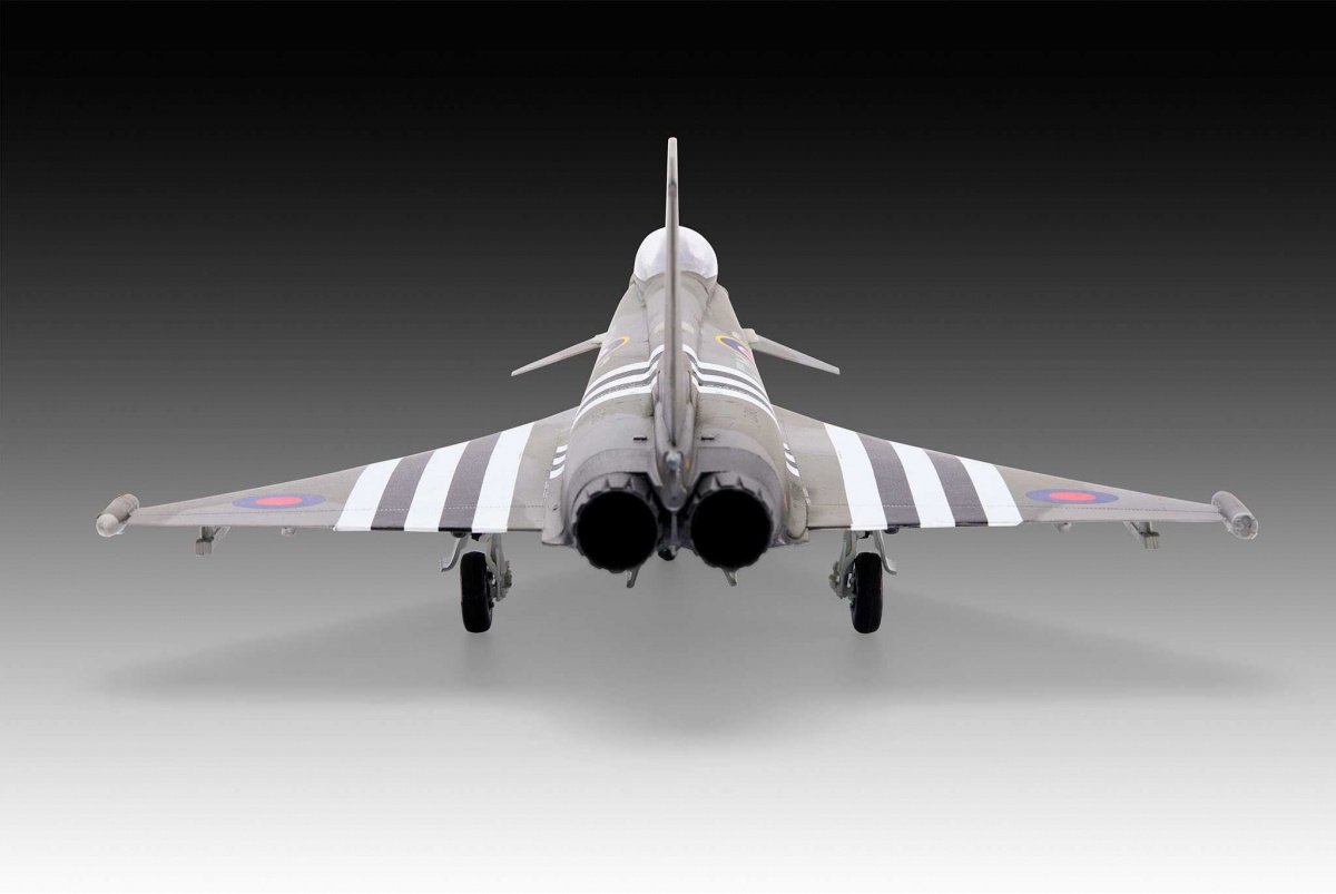 Moderní technologie se setkává s historickou pamětí. Eurofighter FGR.4 v této verzi ukazuje speciální nátěr Royal Air Force u příležitosti 80 let D-Day – inspirovaný předchůdcem Hawker Typhoon z 2. světové války. Model se symbolickou silou, realizovaný v měřítku 1:48.