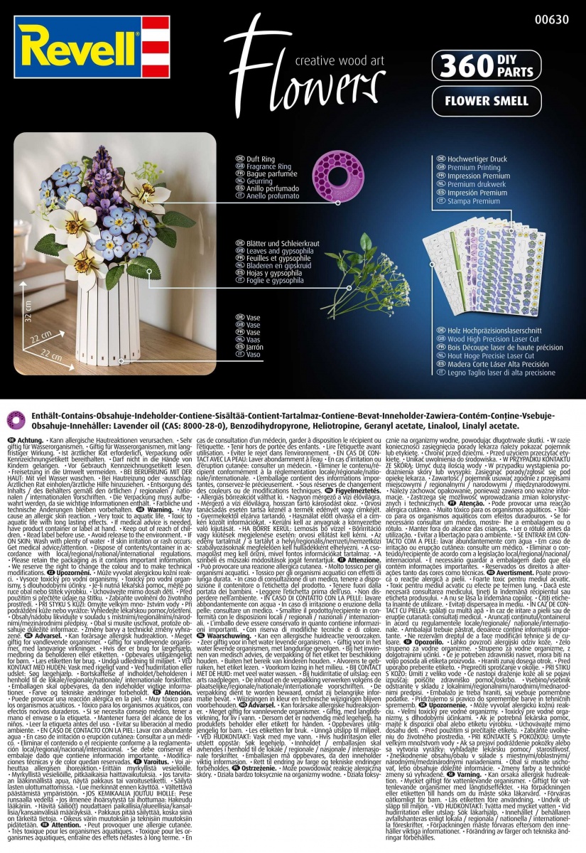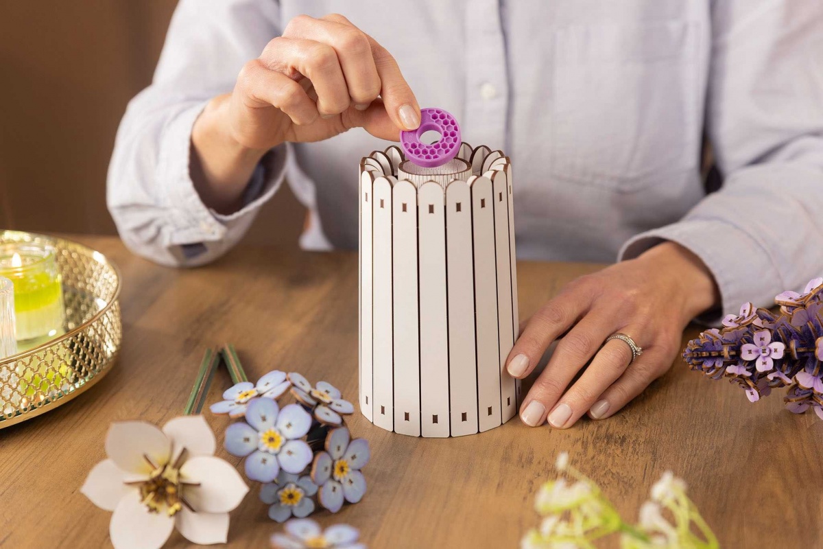Trend „botanické stavby“ – tedy replikace rostlin z odolných materiálů – se těší celosvětově rostoucí oblibě. Je to moderní interpretace zátiší. Revell jde ještě o krok dále a spoléhá na přírodní materiál dřevo, který kombinuje udržitelnost a estetiku. Kombinace vizuální krásy a čichové přitažlivosti prostřednictvím vonného kroužku dělá z této sady inovaci v oblasti kreativního interiérového designu. Určeno pro osoby starší 14 let.