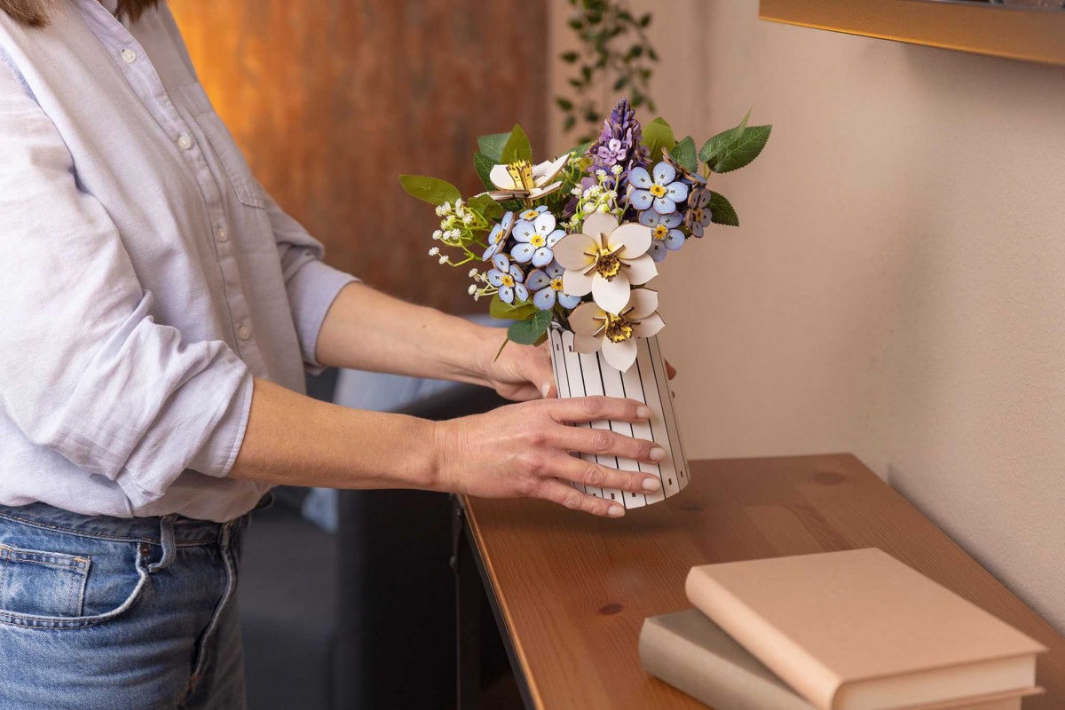 Čerstvé květiny vám okamžitě vykouzlí úsměv na tváři – jejich krása ale bohužel často mizí až příliš rychle. Se sadou „Blossom Festival“ to můžete změnit. Vytvoříte květinové umělecké dílo, které nikdy nevadne a přináší trvalou radost. Tato vysoce kvalitní dřevěná stavebnice kombinuje meditativní klid tvoření se stylovou bytovou dekorací. Výsledkem je svěží kytice, která je tak jemně zpracovaná, že se musíte podívat dvakrát, abyste si uvědomili: je to dřevo, ne svěží zelená. Perfektní pro každého, kdo chce rozzářit svůj domov nebo hledá dárek s trvalou hodnotou.