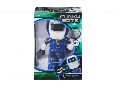 Tobi, Marvin a Bubble: to jsme my, noví Funky Boti! Dotkni se našeho čela a popovídáme si s tebou. Mluvíme, žvatláme a smějeme se naším vlastním robotím jazykem. Jsme rádi, když můžeme stát na tvém stole nebo s tebou jít za tvými kamarády – a hned jak nás uslyšíš mluvit a podíváš se nám do našich svítících očí, dostaneš zaručeně dobrou náladu. Části našich těl jsou vyrobené z kovu a bez problémů s nimi dokážeme hýbat. Pokud si nás zrovna nevšímáš, po chvíli se automaticky vypneme a ušetříme si tak energii. Probudit nás můžeš zmáčknutím tlačítka, které máme vzadu na hlavě