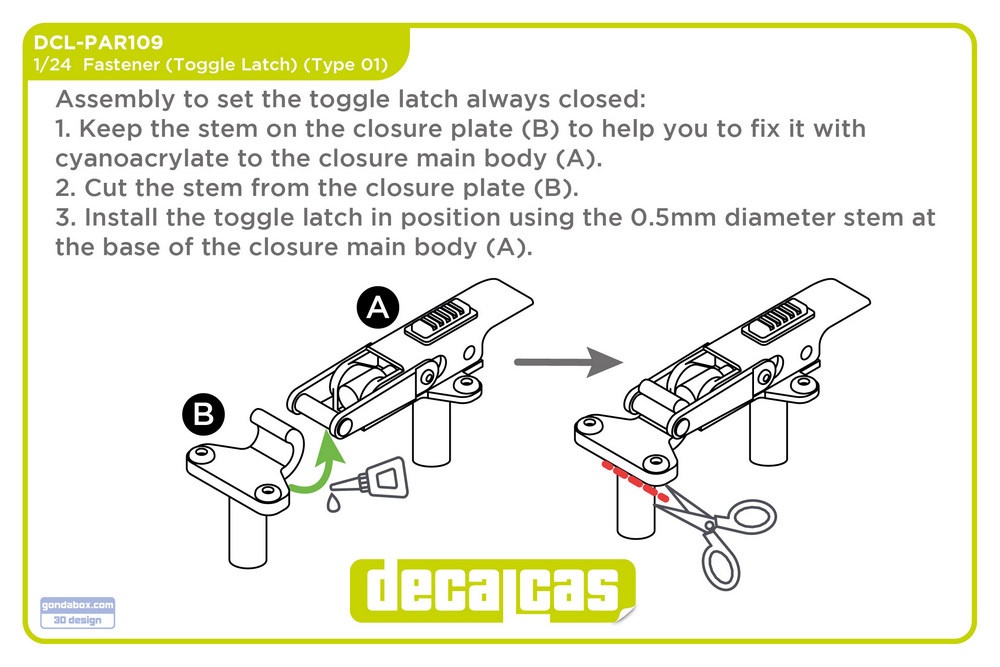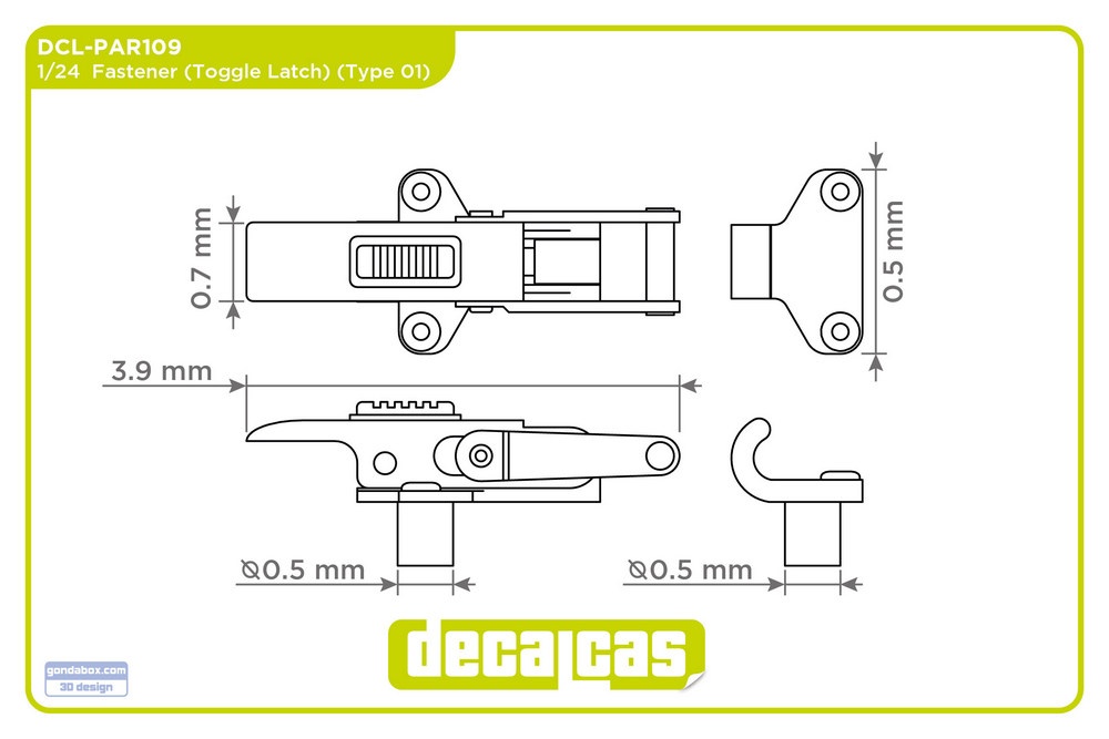latches“, made in 1/24 scale and manufactured using 3D printing.