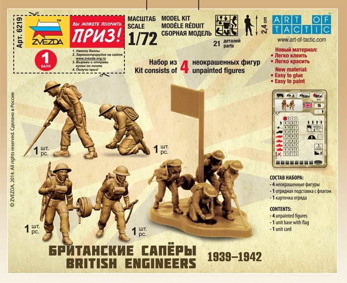 Sada figurek doplňujících modely. Velikost figurek je 1:72; 2,4 cm. Balení obsahuje: 21 dílků.