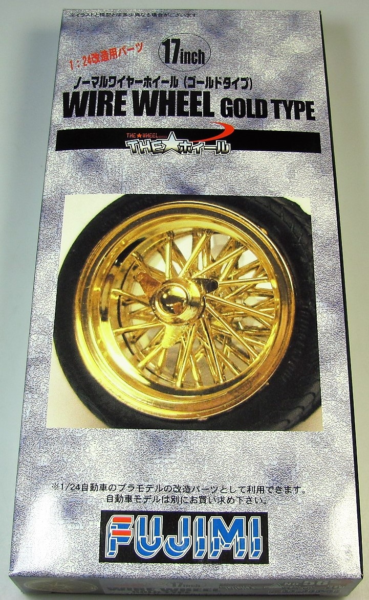 TW56 Wire Wheel Gold Type Wheel & Tire Set 17 inch 1/24 - Fujimi